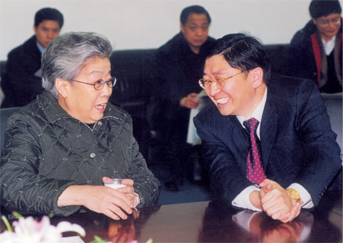 國(guó)務(wù)院副總理吳儀視察浪莎,與公司董事局主席親切交談