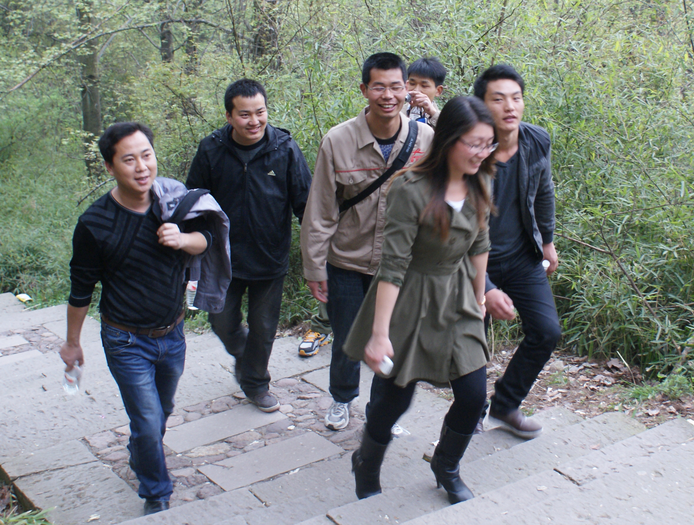 下午3點整,我們從公司出發直奔德勝巖,到了山腳入口就已經感受到節日的氣氛了——一條崎嶇的山路邊停車各類小車。公司的大巴車艱難行進,最終還是沒有能夠成功開進去,下車走幾步是免不了的啦!登山的途中總是能夠令人想到“上山容易下山難”的俗語,同行的女同事可以說是不斷克服著恐懼的心理最終成功登頂,男同事則一路走來說笑逗樂,氣氛十分融洽。